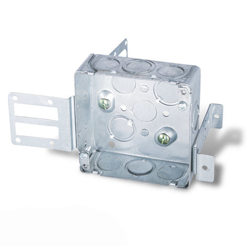 Zara Electrique52171-KSSX Boîte pour appareil ou de jonction carrée de 4”. Enveloppante pour montants en acier de 2 1/2“ et 3 5/8” avec équerre de support inté...