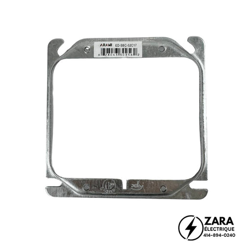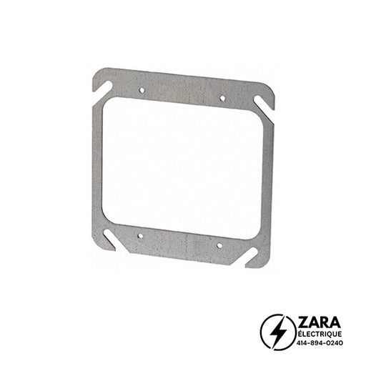 52C13 Anneau de dispositif carré de 4” simple, surélève de 1/2″ à 2″. 4” Square 1-gang device ring. From 1/2” to 2” raised.